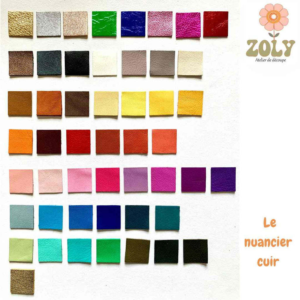 Cuir d'agneau plongé, couleur unie, découpe nette à l'emporte pièce.
