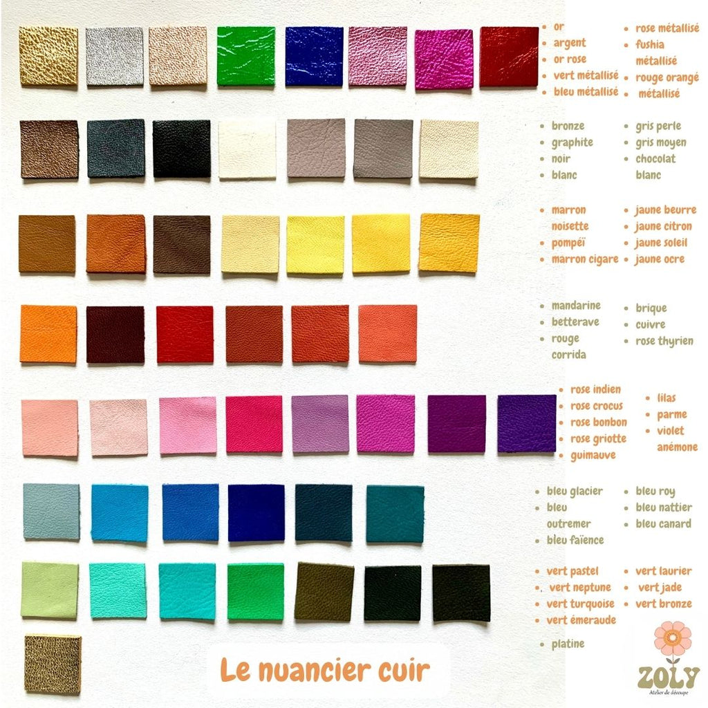 Cuir d'agneau plongé, couleur unie, découpe nette à l'emporte pièce.